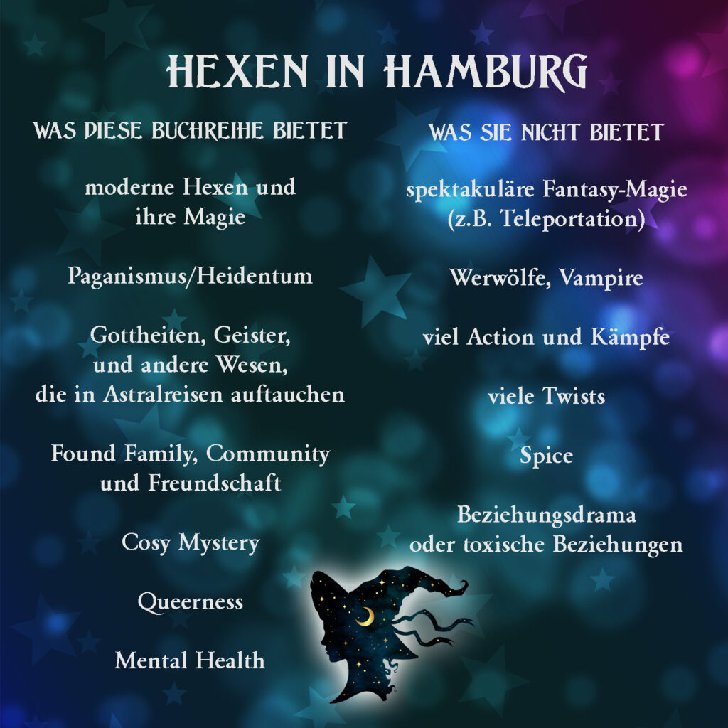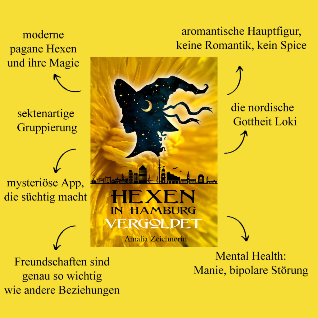 Ihr mögt Cosy Urban Fantasy, mit modernen paganen Hexen? Dann habe ich etwas für euch, ich mache wieder eine Vorbestell-Aktion, diesmal für das Taschenbuch von „Hexen in Hamburg: Vergoldet“. Das ist Band 4 der Reihe, aber wie alle anderen ist er unabhängig von den vorherigen lesbar.